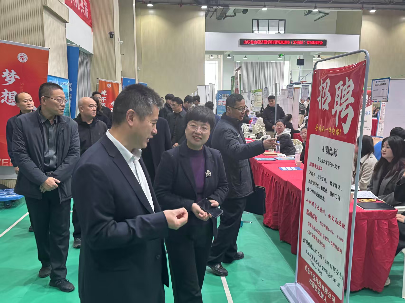 濟(jì)南市人社局公共就業(yè)服務(wù)中心人力資源處處長潘冰,天橋區(qū)區(qū)委組織部副部長、人社局黨組書記、局長胡彥平一行到校區(qū)調(diào)研指導(dǎo),與校區(qū)及企業(yè)代表共商政校企協(xié)同育人機(jī)制,為大學(xué)生就業(yè)創(chuàng)業(yè)提供政策與平臺支持,增強(qiáng)畢業(yè)生留魯、留濟(jì)就業(yè)的認(rèn)同感與主動性。