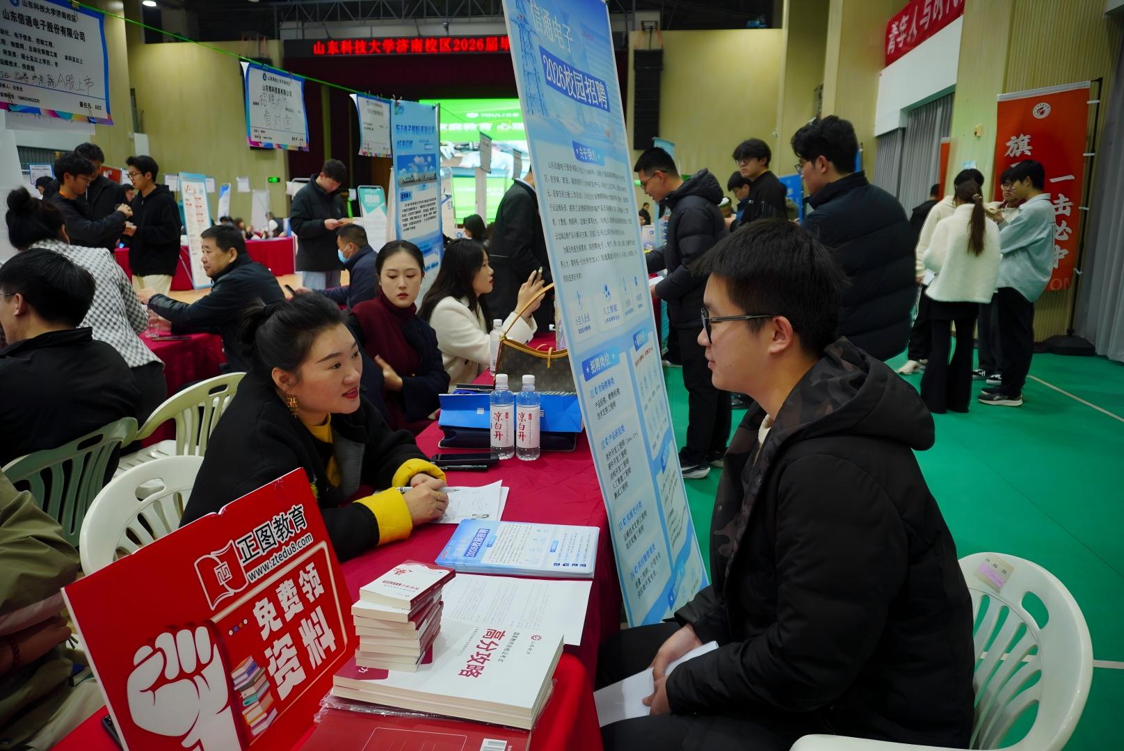 11月15日,山東科技大學(xué)濟(jì)南校區(qū)2026屆畢業(yè)生校園雙選會暨山東省會經(jīng)濟(jì)圈求職招聘直通車(濟(jì)南站)專場招聘會在藝體樓二樓順利舉行。校區(qū)黨委書記梁賽江、主任郭加書,校區(qū)黨委委員仉興泉、毛慶東、施宙等到招聘會現(xiàn)場,與用人單位以及求職學(xué)生親切交流,了解企業(yè)用人需求和學(xué)生求職意向,積極推介校區(qū)畢業(yè)生。