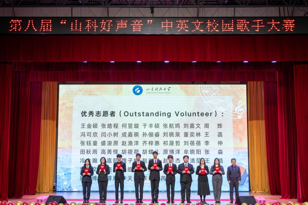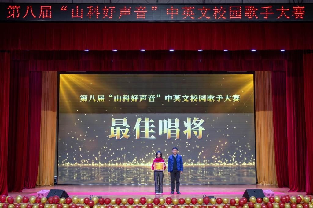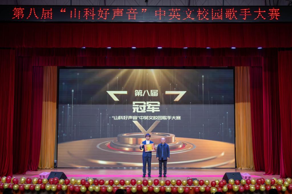 為提升大學(xué)生藝術(shù)修養(yǎng),激發(fā)英語(yǔ)學(xué)習(xí)熱情,豐富校園文化生活,推進(jìn)國(guó)際化校園建設(shè),12月14日,由學(xué)團(tuán)工作部主辦、校區(qū)學(xué)生會(huì)承辦的第八屆“山科好聲音”中英文校園歌手大賽決賽在藝體樓隆重舉行。濟(jì)南校區(qū)主任郭加書(shū),校區(qū)黨委委員毛慶東、劉西奎,相關(guān)部門(mén)負(fù)責(zé)人、學(xué)團(tuán)工作干部、部分外籍教師和學(xué)生共同觀看比賽?;顒?dòng)還特邀山東第一醫(yī)科大學(xué)、齊魯工業(yè)大學(xué)、山東中醫(yī)藥大學(xué)、山東財(cái)經(jīng)大學(xué)、濟(jì)南大學(xué)等駐濟(jì)兄弟高校學(xué)生會(huì)主席團(tuán)成員參加。