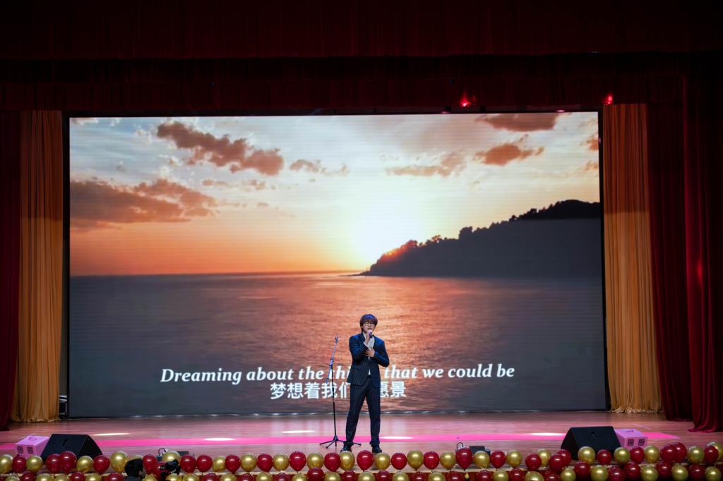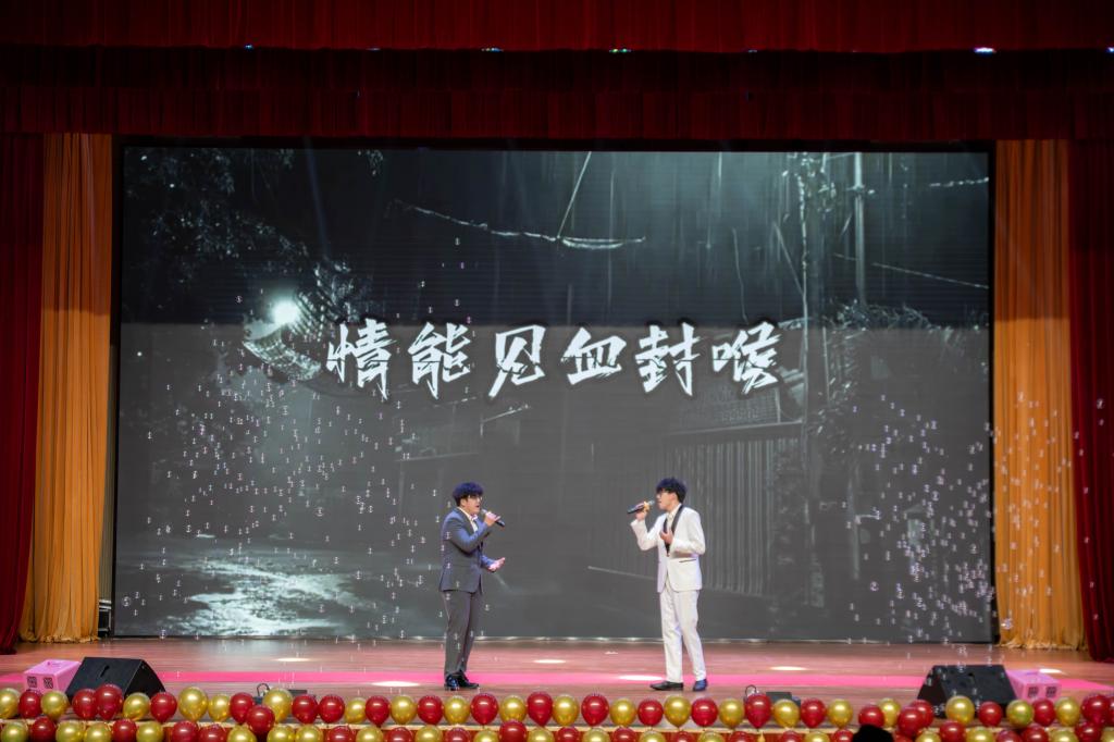 經(jīng)過(guò)初賽、復(fù)賽階段的激烈角逐,十組選手脫穎而出晉級(jí)決賽。決賽采用中英文雙語(yǔ)競(jìng)唱模式,設(shè)置中文歌曲演繹與英文經(jīng)典傳唱兩大環(huán)節(jié),充分展現(xiàn)濟(jì)南校區(qū)中外合作辦學(xué)的國(guó)際化特色,為觀眾呈現(xiàn)了一場(chǎng)中西合璧的音樂(lè)盛宴。特別設(shè)置的往屆獲獎(jiǎng)選手與藝術(shù)團(tuán)聯(lián)袂表演環(huán)節(jié),將現(xiàn)場(chǎng)氣氛推向高潮,生動(dòng)詮釋了中外文化交融的獨(dú)特魅力。