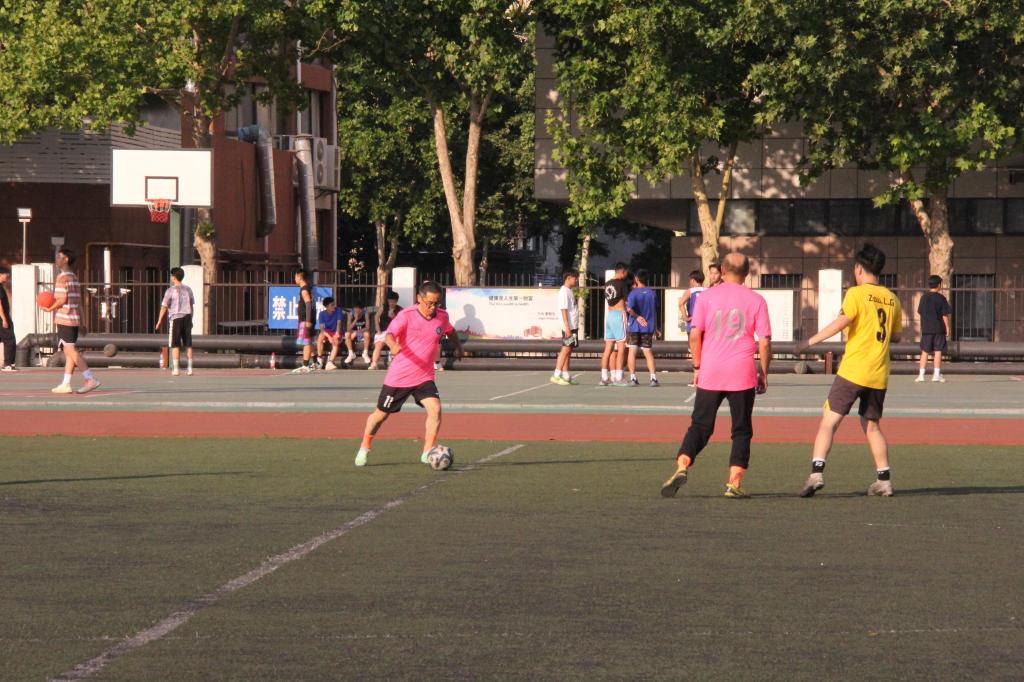 下午5時許,工會董向陽主席致辭,并向畢業(yè)生參賽隊員贈送禮品,隨即比賽正式開始。本次比賽采取半場九人制,年齡優(yōu)勢讓畢業(yè)生隊在開場后迅速占據(jù)主動,多次獲得得分良機,但運氣稍欠,直到臨近半場結束,畢業(yè)生隊打出一次成功的邊路組合進攻,由門前隊員搶點得分,打破了場上僵局。下半場,教工隊體能明顯下降,畢業(yè)生隊抓住機會再下一城,2:0領先。隨后,教工隊展開最后的反攻,多次覓得良機,無奈臨門一腳總是欠缺,但還是在終場前抓住機會扳回一球,最終比分定格在1:2。