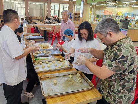 “每逢佳節(jié)倍思親”,在國(guó)慶、中秋雙節(jié)來(lái)臨之際,為使學(xué)生感受學(xué)校大家庭的溫暖,充分體驗(yàn)中華傳統(tǒng)優(yōu)秀文化的魅力,學(xué)校餐廳組織外籍教師和學(xué)生參與到“中秋包月餅迎佳節(jié)”活動(dòng)。