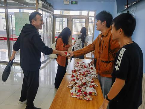 贈(zèng)送月餅的活動(dòng)于9月28日中午餐廳東門、西門同時(shí)舉行,由餐廳工作人員與學(xué)生代表共同為師生免費(fèi)贈(zèng)送,期間制作并發(fā)放月餅3000余枚。