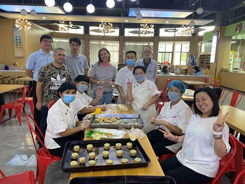 在活動(dòng)的現(xiàn)場(chǎng),經(jīng)過(guò)食堂專業(yè)師傅的細(xì)心指導(dǎo),餐廳員工與外教、學(xué)生親切交流,傳授制作月餅的方法與技巧,在知道自己包下的月餅會(huì)發(fā)放到每一個(gè)同學(xué)的手中,大家更是干勁十足。