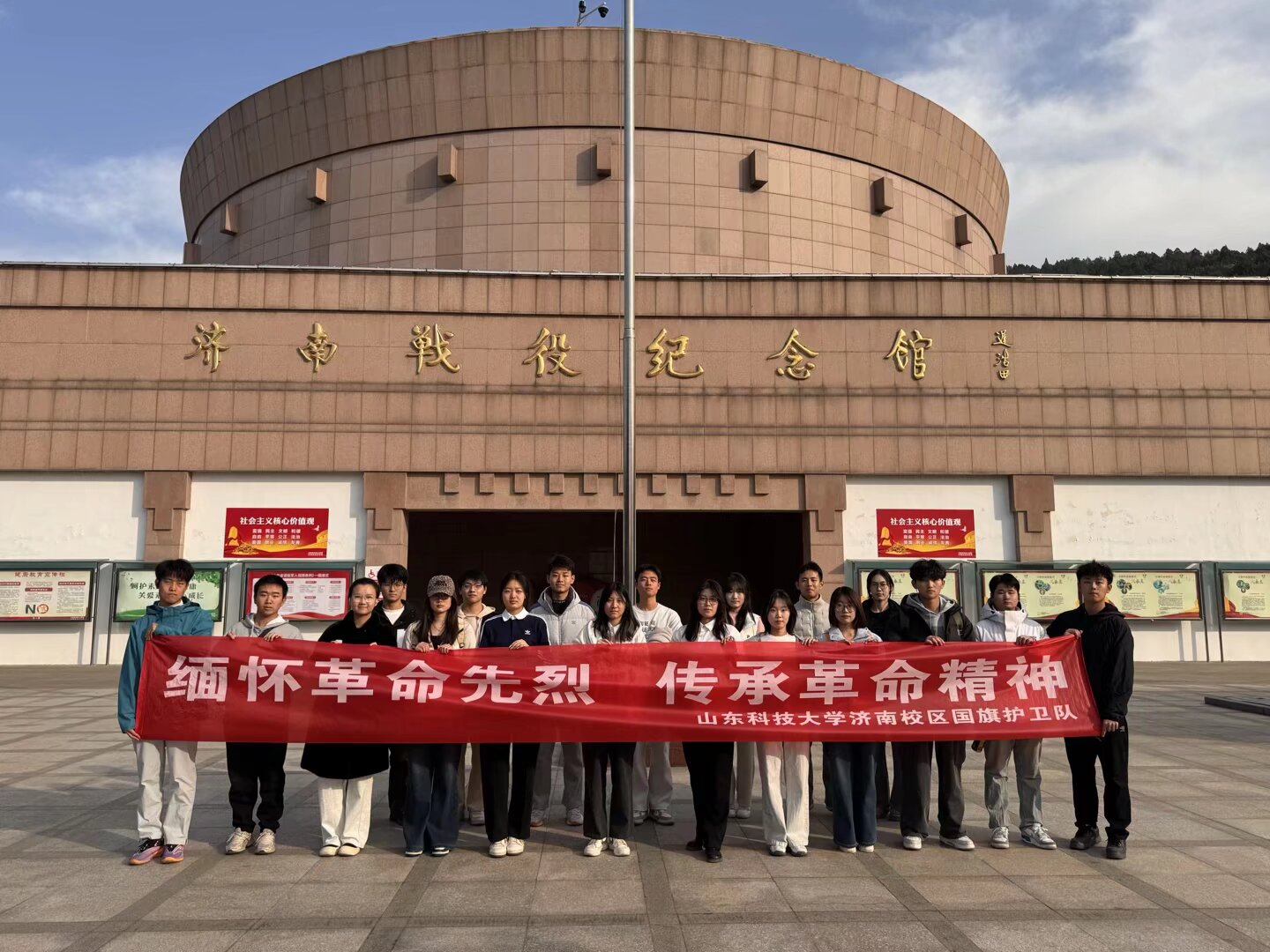 為傳承紅色基因,厚植愛(ài)國(guó)情懷,強(qiáng)化團(tuán)隊(duì)凝聚力與使命擔(dān)當(dāng),11月23日,山東科技大學(xué)濟(jì)南校區(qū)國(guó)旗護(hù)衛(wèi)隊(duì)組織全體隊(duì)員赴濟(jì)南英雄山開(kāi)展“緬懷革命先烈、汲取奮進(jìn)力量”主題紅色團(tuán)建活動(dòng)。活動(dòng)以徒步拉練為載體,將體能訓(xùn)練與紅色教育深度融合,在革命歷史的浸潤(rùn)中錘煉作風(fēng),于團(tuán)隊(duì)協(xié)作中凝聚奮進(jìn)力量。