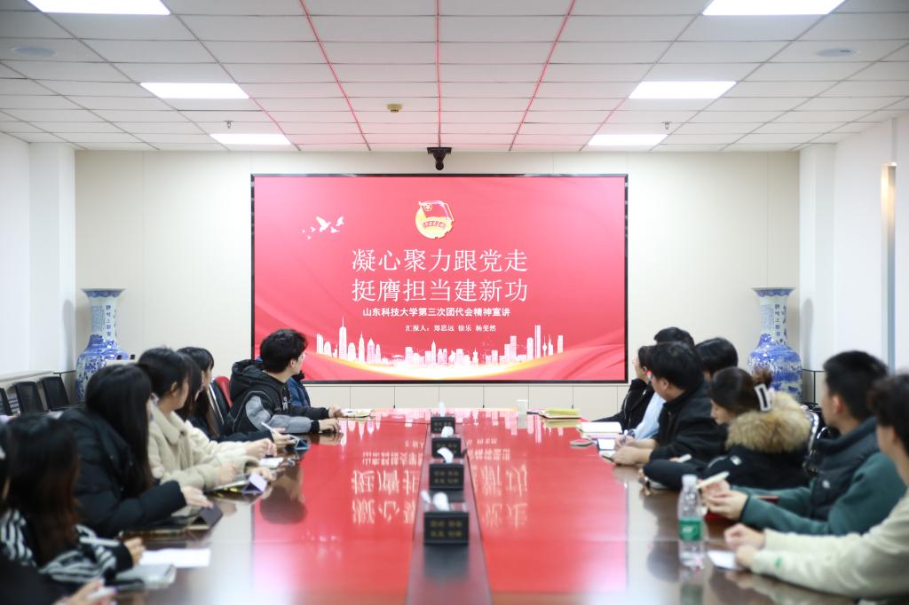 會(huì)議集中學(xué)習(xí)了校團(tuán)委書(shū)記高一丹在在共青團(tuán)山東科技大學(xué)第三次代表大會(huì)上作的題為《凝心聚力跟黨走挺膺擔(dān)當(dāng)建新功為全面建設(shè)工科主導(dǎo)、特色鮮明的高水平應(yīng)用研究型大學(xué)貢獻(xiàn)青春力量》的工作報(bào)告。報(bào)告全面客觀(guān)地總結(jié)了學(xué)校第二次團(tuán)代會(huì)以來(lái)的共青團(tuán)工作,深刻分析共青團(tuán)工作面臨形勢(shì)與挑戰(zhàn),提出未來(lái)五年將以實(shí)施“青?志”青春鑄魂工程、“青?鋒”青春挺膺工程、“青?耘”青春托舉工程、“青?筑”青春強(qiáng)基工程為總抓手,細(xì)化落實(shí)十二項(xiàng)青春行動(dòng),團(tuán)結(jié)帶領(lǐng)廣大團(tuán)員青年在全面建設(shè)工科主導(dǎo)、特色鮮明的高水平應(yīng)用研究型大學(xué)的生動(dòng)實(shí)踐中,在強(qiáng)國(guó)建設(shè)、民族復(fù)興的偉大征程中,書(shū)寫(xiě)無(wú)愧于時(shí)代、無(wú)愧于歷史、無(wú)愧于人民的青春華章。徐樂(lè)、鄭思遠(yuǎn)、楊斐然等三位團(tuán)代表作交流分享,深入領(lǐng)學(xué)報(bào)告精神。