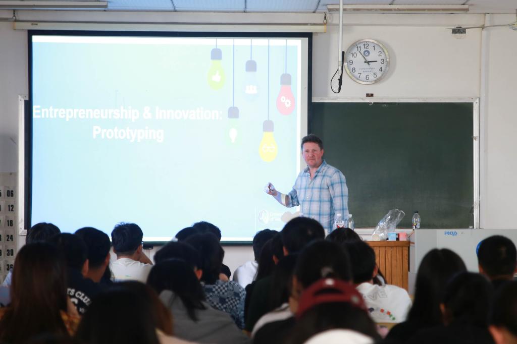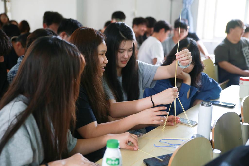教授將“棉花糖挑戰(zhàn)”搬進(jìn)課堂,組織現(xiàn)場同學(xué)利用意大利面、膠帶和棉花糖進(jìn)行搭建。從最初的設(shè)計(jì)構(gòu)思到實(shí)際搭建,再到反復(fù)拆解重構(gòu),棉花糖挑戰(zhàn)見證了思維碰撞與迭代優(yōu)化的全過程。此起彼伏的討論與成功搭建后的歡呼,充分彰顯出濃厚的學(xué)術(shù)實(shí)踐氛圍與團(tuán)隊(duì)凝聚力。隨后,Robin Bell教授借助TED演講再次強(qiáng)調(diào)了原型迭代對于新產(chǎn)品設(shè)計(jì)的重要性。