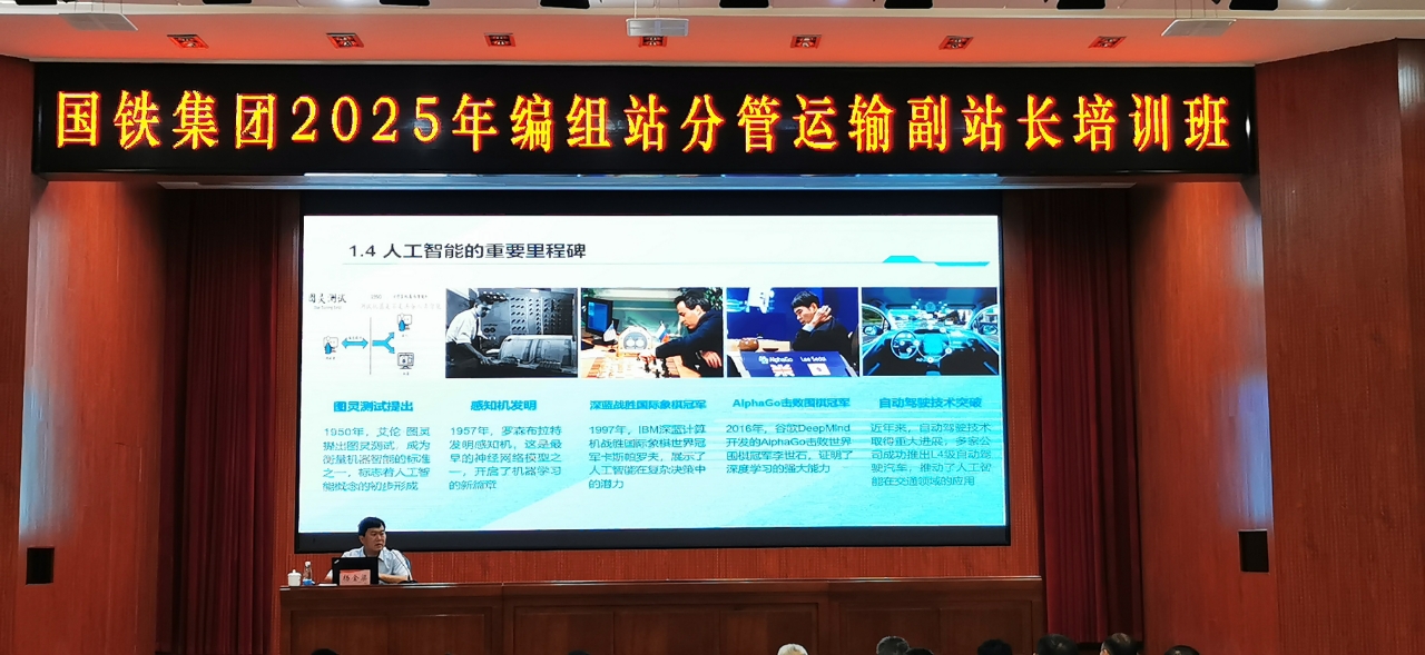為助力鐵路系統(tǒng)智能化升級(jí),推動(dòng)人工智能技術(shù)在鐵路運(yùn)輸領(lǐng)域的創(chuàng)新應(yīng)用,6月18日上午,濟(jì)南校區(qū)楊金梁副教授赴濟(jì)南鐵路局黨校,為來自鐵路系統(tǒng)的80余名編組站副站長開展題為《人工智能發(fā)展現(xiàn)狀及在鐵路運(yùn)輸中的應(yīng)用前景》的專題培訓(xùn)。
