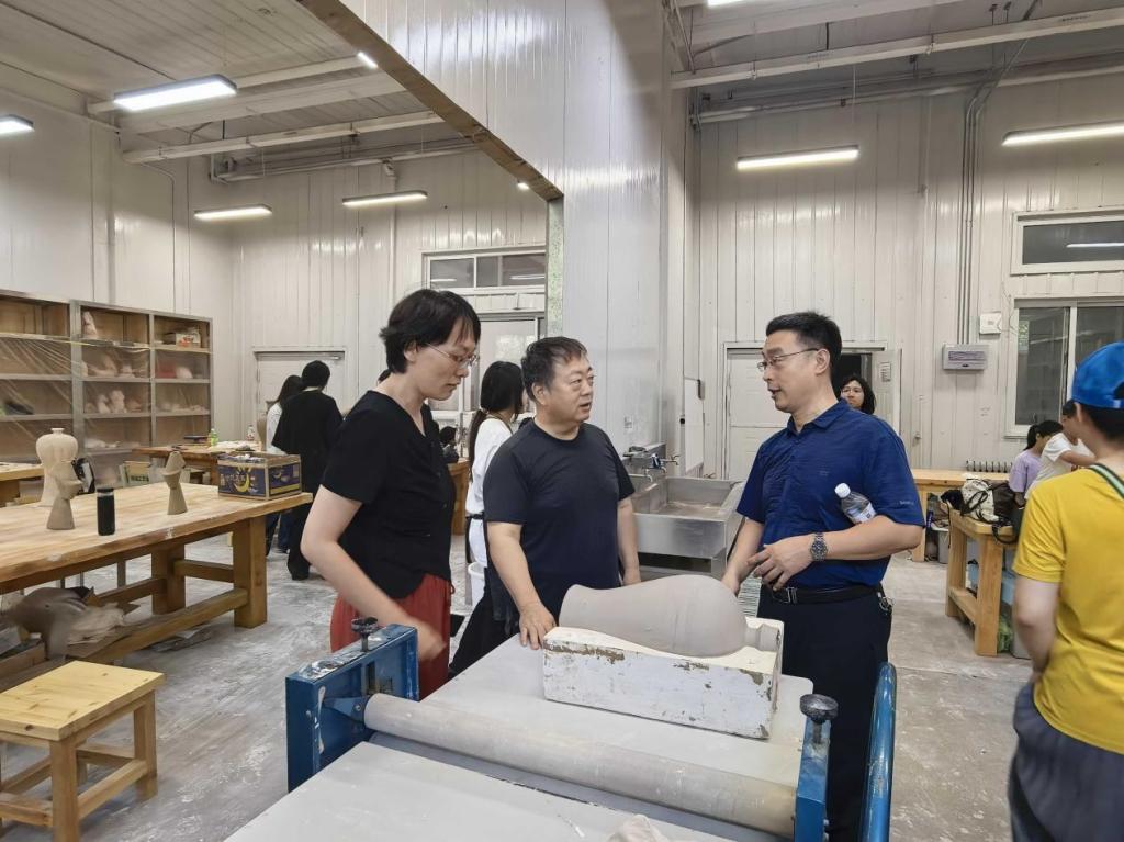 交流會后,孫國強一行實地參觀了山東工藝美術(shù)學院現(xiàn)代手工藝術(shù)學院師生作品展廳及部分專業(yè)工作室,直觀感受了該校濃厚的實踐教學氛圍與鮮明的辦學特色??疾熳詈?,一行人專程看望了正在此處開展實習的斯威本學院 2022 級工業(yè)設(shè)計專業(yè)師生,關(guān)切詢問了實習進展與生活情況。