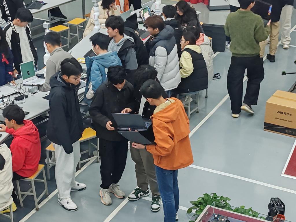 10月30日至31日,培訓(xùn)迎來實戰(zhàn)沖刺階段。中心還原真實競賽場景,組織同學(xué)們開展全流程實操模擬演練,全面檢驗程序運行穩(wěn)定性與設(shè)備協(xié)同適配性。主講團隊全程駐場跟進,針對演練中出現(xiàn)的硬件故障、程序卡頓等典型問題提供“一對一”精準指導(dǎo),幫助同學(xué)們在實戰(zhàn)中積累經(jīng)驗、優(yōu)化方案,提升應(yīng)急處置與團隊協(xié)作能力。