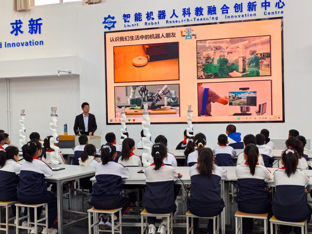2025年11月17日上午九時,寶華小學四年級五班45名同學身著整齊校服,懷著期待走進校區(qū)智能機器人科教融合創(chuàng)新中心,開啟了一場趣味盎然的科技研學活動。