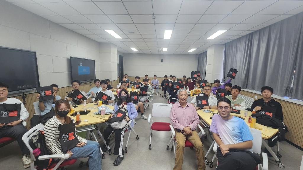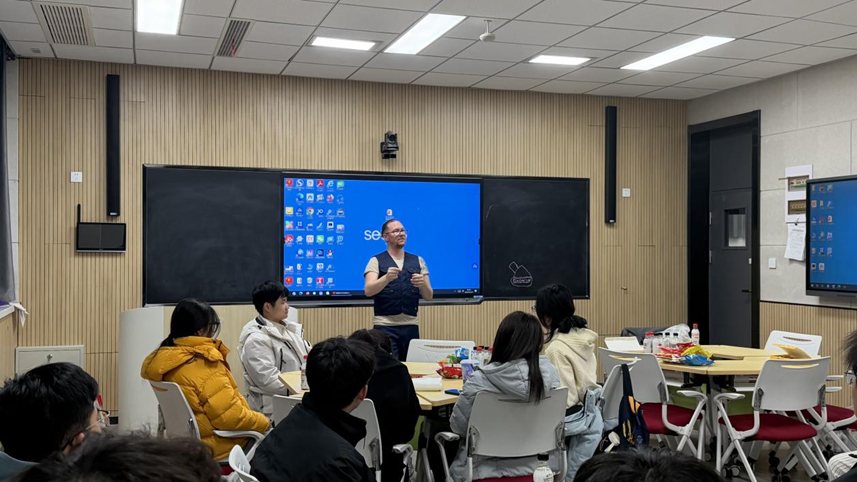 在互動(dòng)環(huán)節(jié),Cliff先生將他的人生哲學(xué)凝練為兩點(diǎn)真摯贈(zèng)言:“對(duì)自己熱愛(ài)的事物,請(qǐng)永遠(yuǎn)保持不熄的激情;對(duì)遇見(jiàn)的同行者,請(qǐng)永遠(yuǎn)懷抱結(jié)交的真誠(chéng)?!?他更別出心裁地設(shè)置“傾聽(tīng)年輕聲音”的環(huán)節(jié),主動(dòng)邀請(qǐng)?jiān)趫?chǎng)學(xué)生為他提供人生建議。一位同學(xué)的“行動(dòng)是理想的最高表達(dá),其價(jià)值遠(yuǎn)勝于空談的努力”引發(fā)了全場(chǎng)共鳴,Cliff先生對(duì)此深表贊同,并送上精心準(zhǔn)備的小禮物以表感謝。隨后,他與同學(xué)們圍坐暢談,在輕松愉快的氛圍中,繼續(xù)交換著關(guān)于學(xué)業(yè)、職業(yè)與人生的真知灼見(jiàn)。