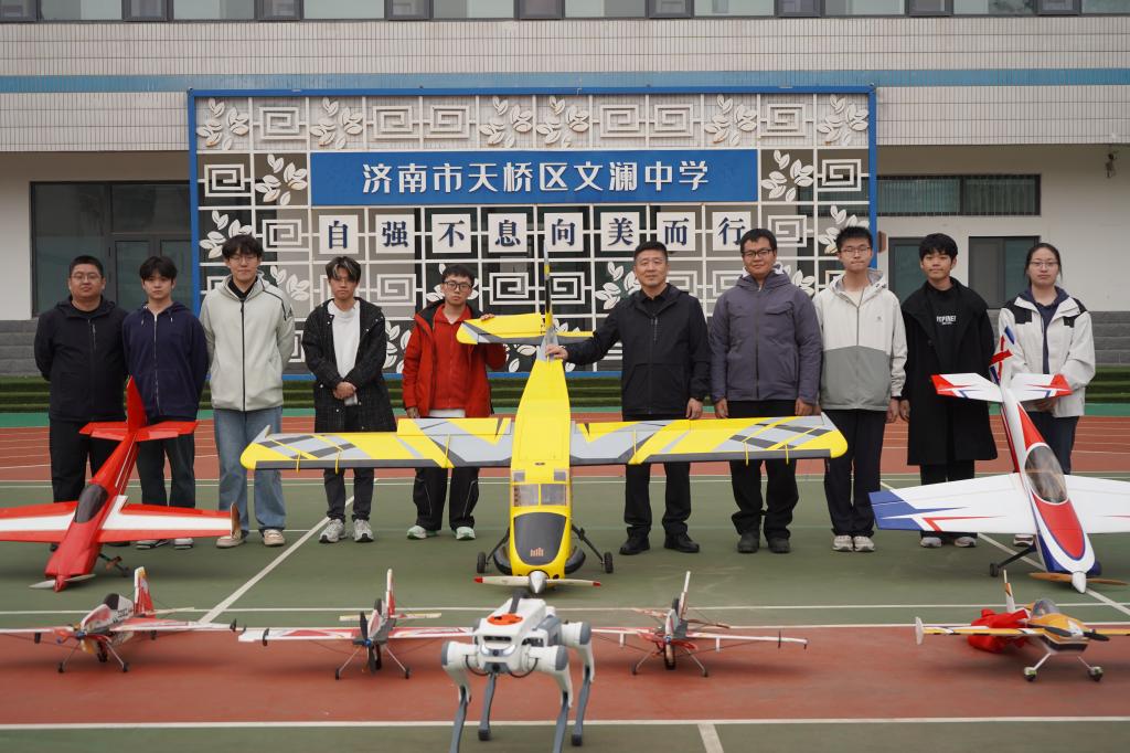 活動(dòng)現(xiàn)場,來自濟(jì)南校區(qū)的無人機(jī)在文瀾中學(xué)操場上空劃出優(yōu)美軌跡,進(jìn)行了編隊(duì)飛行、精準(zhǔn)懸停、穿越障礙等一系列高難度演示,四足機(jī)器人展示了穩(wěn)健行走、上下樓梯、連續(xù)跳躍等能力,引來在場師生的陣陣掌聲。社團(tuán)成員們用通俗易懂的語言,為中學(xué)生們講解了無人機(jī)的基本原理、應(yīng)用領(lǐng)域與未來發(fā)展趨勢(shì)以及機(jī)器人技術(shù)背后的傳感、決策與控制原理。