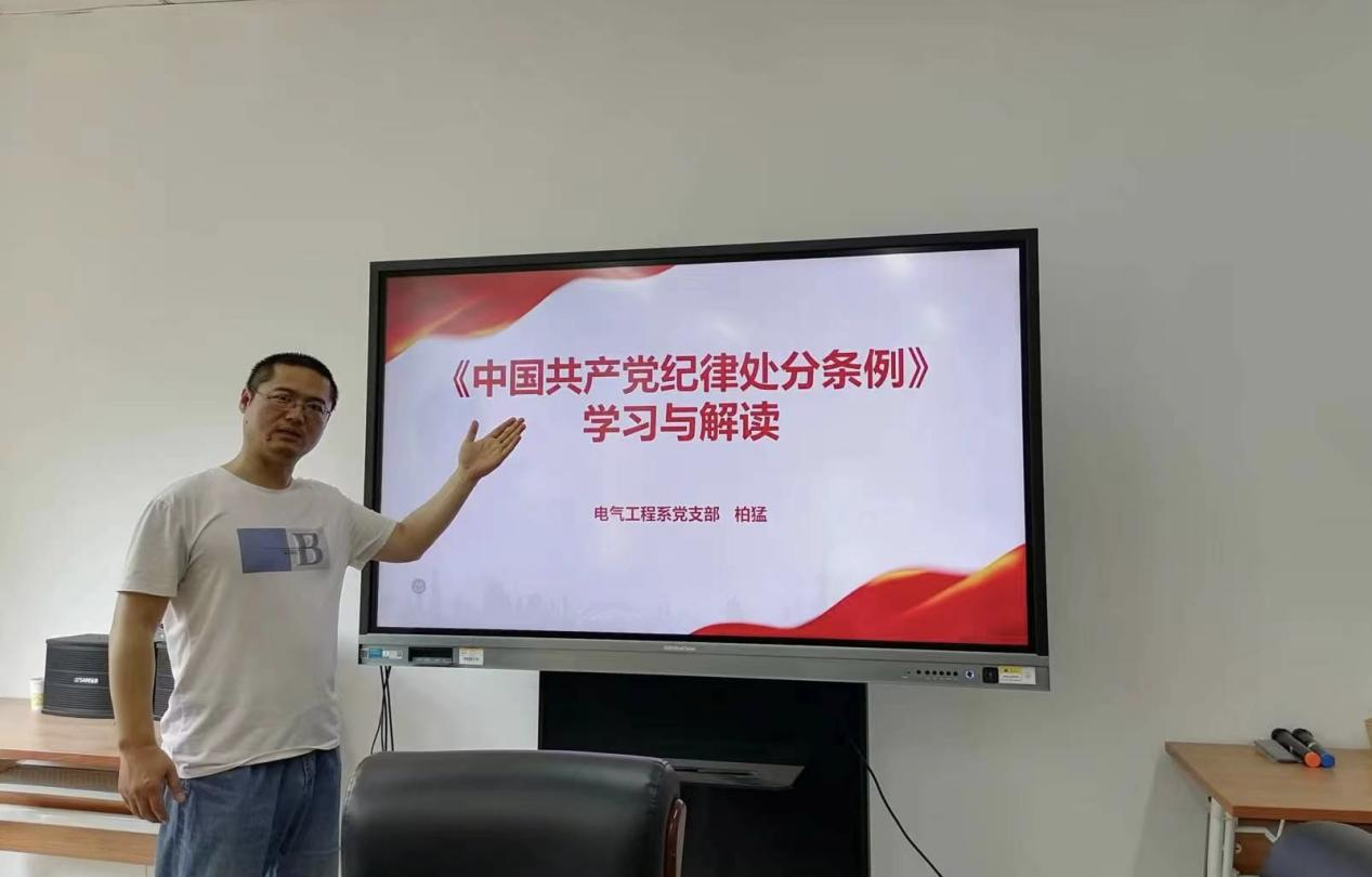 電氣工程系黨支部、通信工程系黨支部、人文社科系黨支部以支部書記講黨課的形式,深入學(xué)習(xí)新修訂的《中國共產(chǎn)黨紀(jì)律處分條例》(以下簡稱《條例》)。